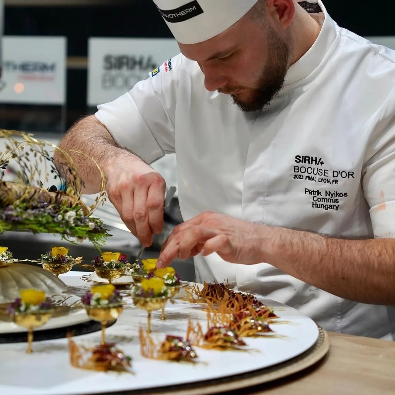 The Hungarian team of Bence Dalnoki (chef), Patrik Nyikos (commis), and Tamás Széll (coach) had to compete with 23 other teams in the finals. Bence Dalnoki is the sous chef at the Stand restaurant in Budapest, while Tamás Széll and Szabina Szulló, who both took part in the coaching, are the chefs and co-owners of the two-Michelin starred restaurant.