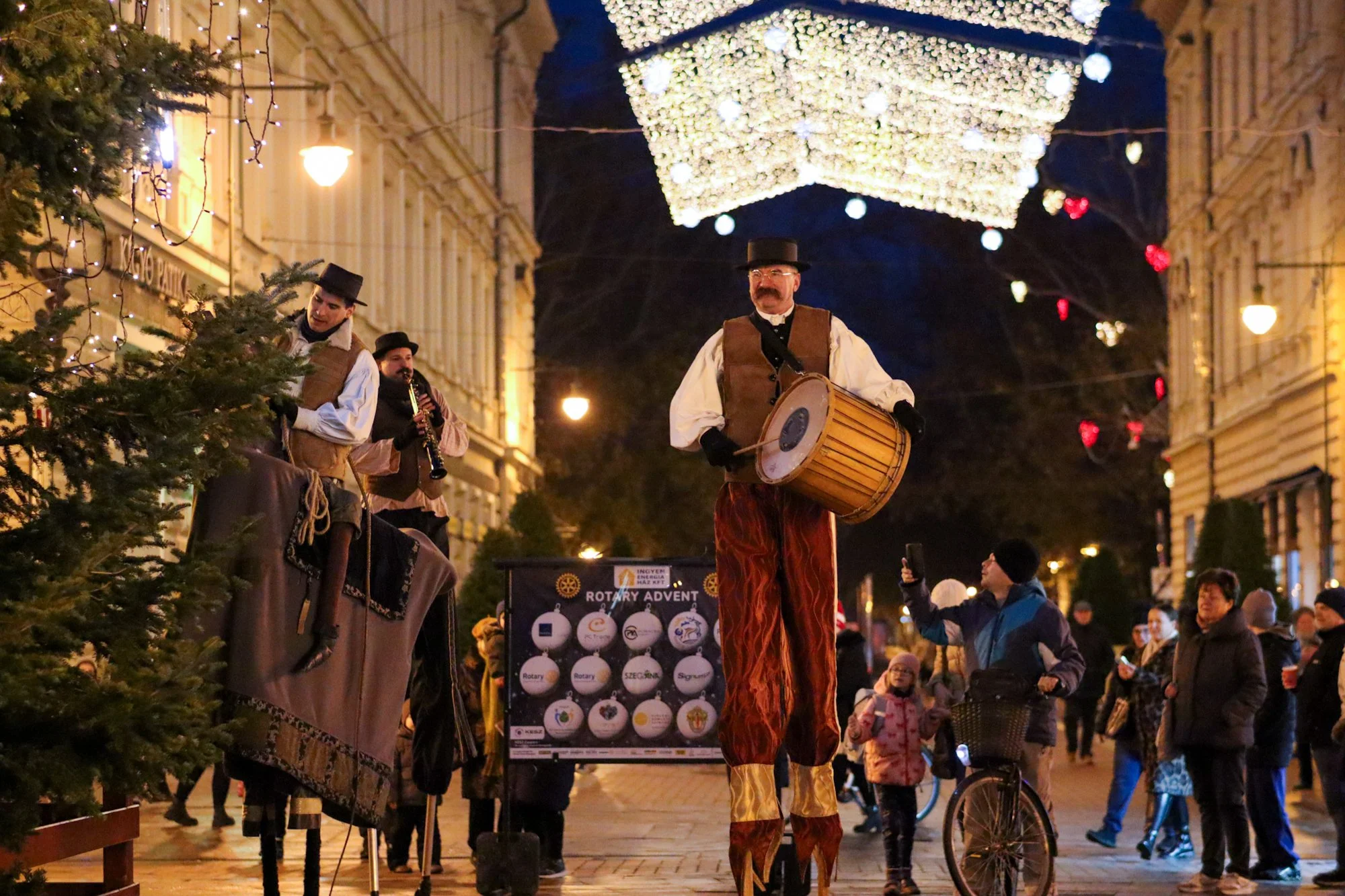 The first candle — symbolizing faith and hopeful anticipation — was lit on November 30 by Mayor László Botka and Bishop László Kiss-Rigó. Addressing the crowd, Botka highlighted the importance of community support during the holiday season, noting ongoing municipal assistance programs for families in need. The bishop emphasized solidarity and peaceful preparation for Christmas.